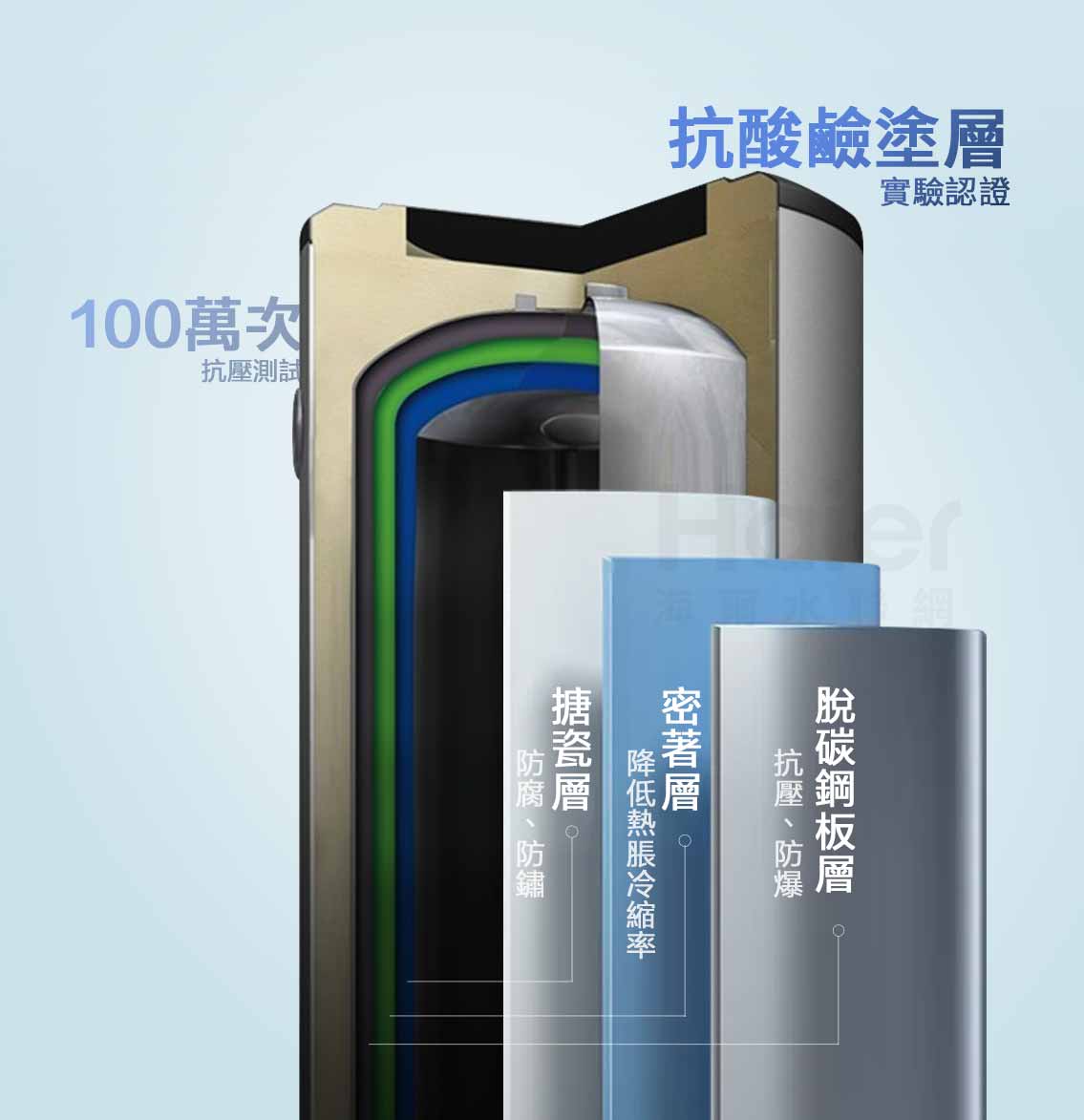 • 搪瓷緻密三層膽:抗壓防爆、不怕酸鹼、堅固耐腐蝕,高強耐用品質保證