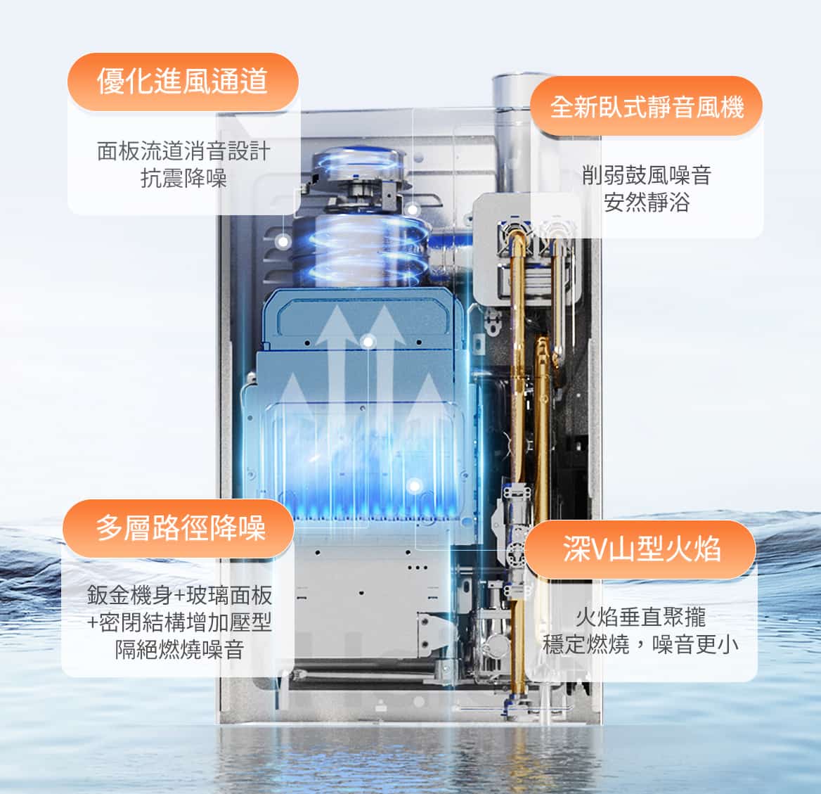 • 升級多重降噪科技:全面降噪,安心用水不擾眠